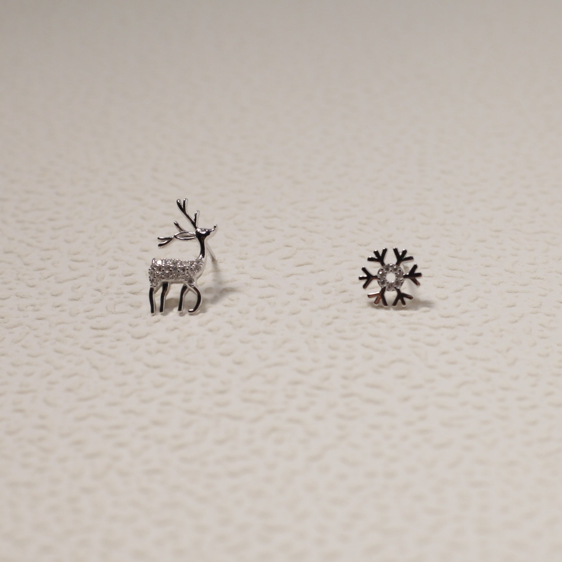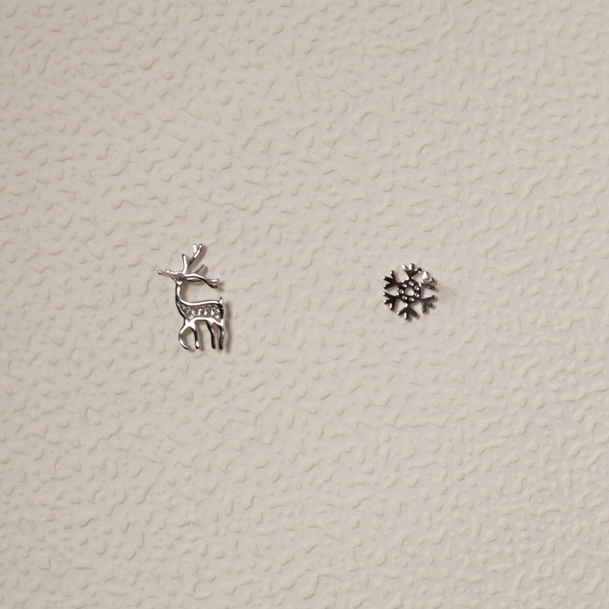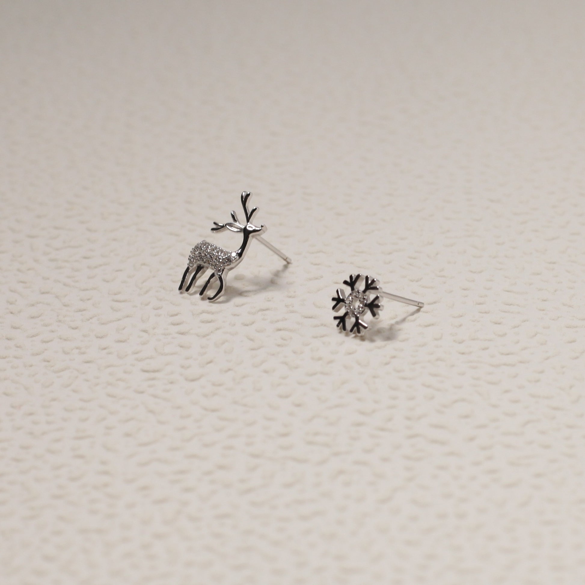 Sterling Silver Christmas Reindeer & Snowflake Stud Earrings
