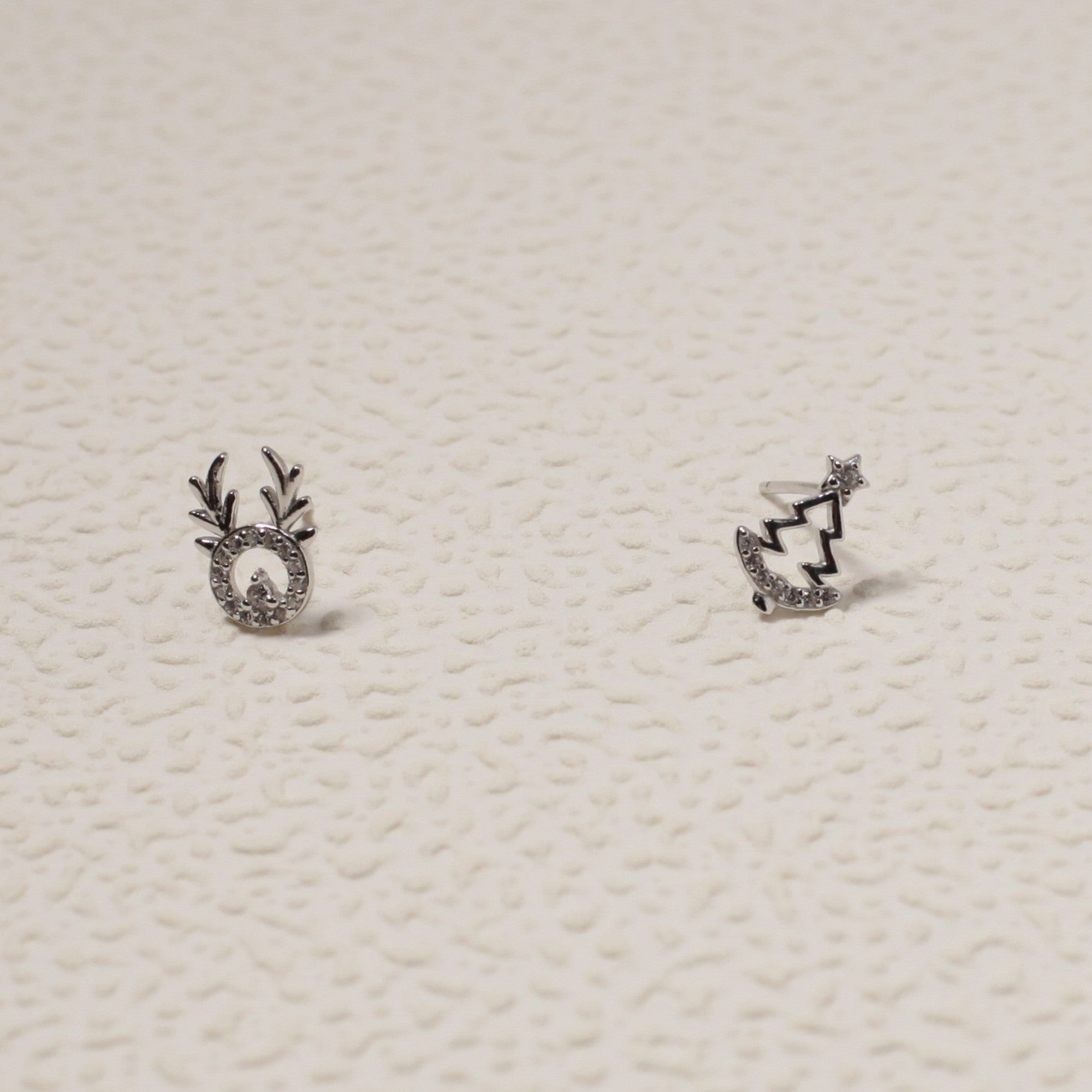 Sterling Silver Reindeer & Christmas Tree Stud Earrings